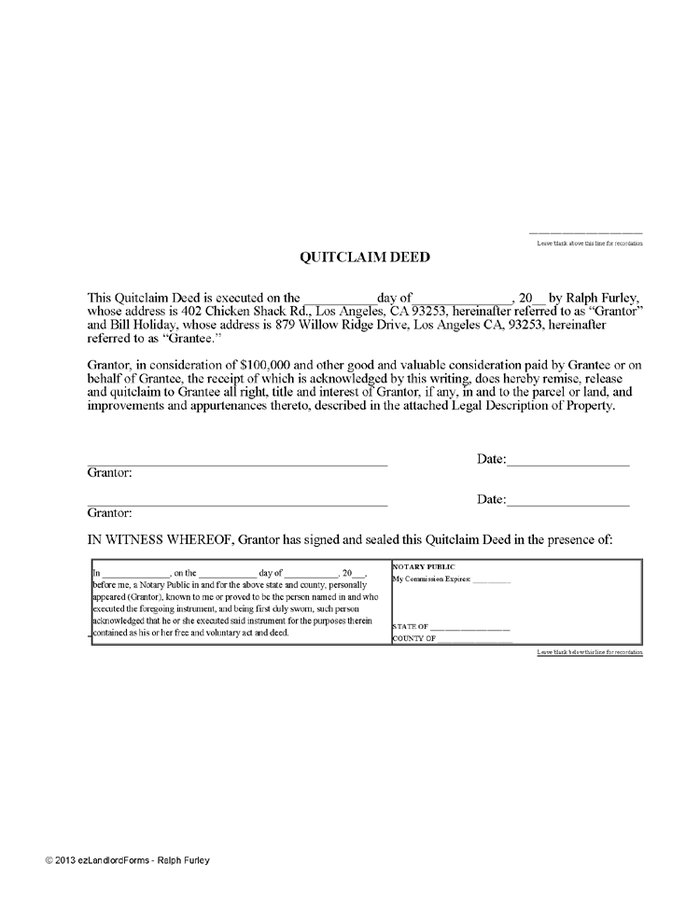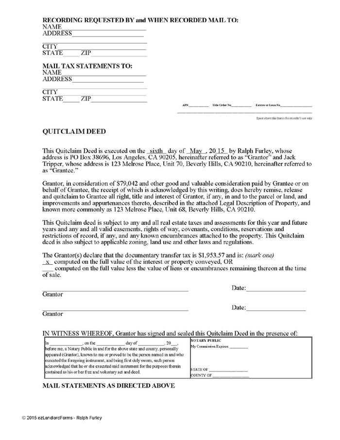 Quitclaim Deed Ezlandlordforms